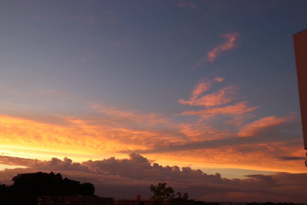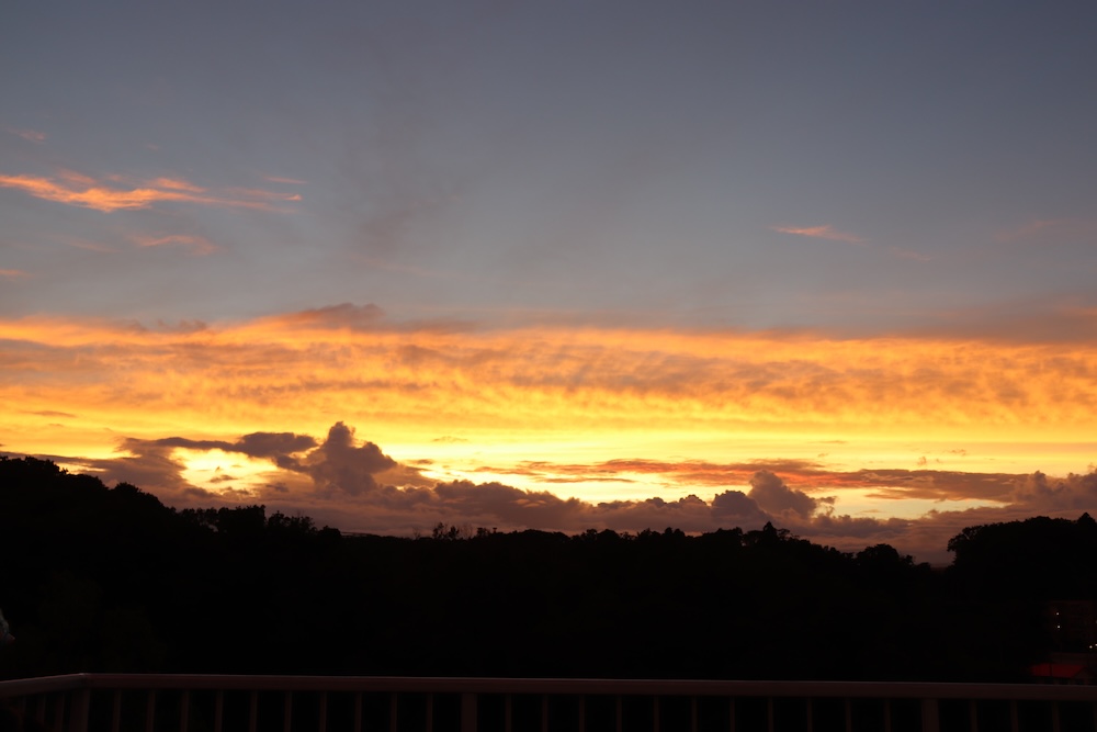 暑さが幾分かマシになった日暮れ頃、夕食を食べ終えて毎日子供達とテラスで鬼ごっこ。この日はものすごい夕日!