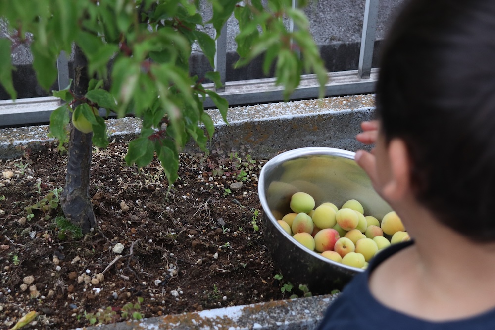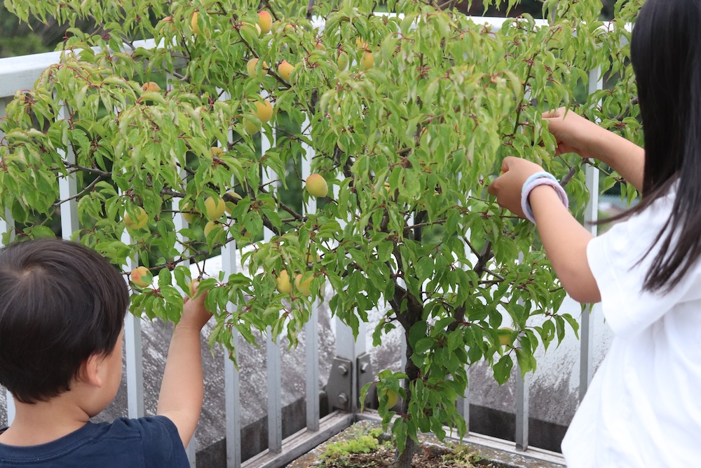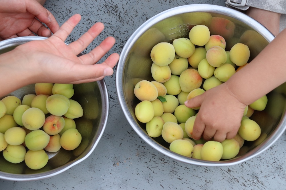 こどもたちは梅の感触を楽しみながら競って黙々と収穫していました。自分の庭でこんなに実を取れるのは幸せですね〜