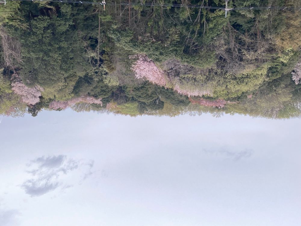 この時季の家の前の山々は、桜や緑のいろいろな色で美しい。
