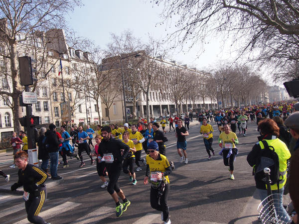 こう書かれた旗を掲げ、原発反対の人々がセーヌ川沿いの歩道、何百メートルにも渡って手をつないでデモをやっていた。Fukushimaの旗を持つ人、折り鶴がついた棒を持つ人、チラシを配る人。様々。