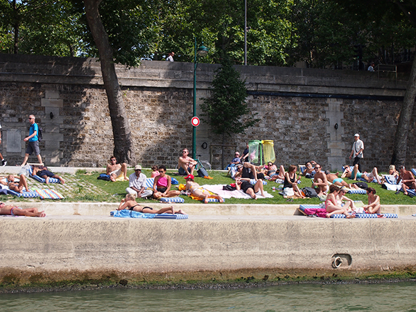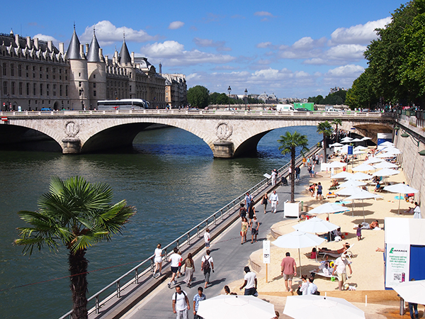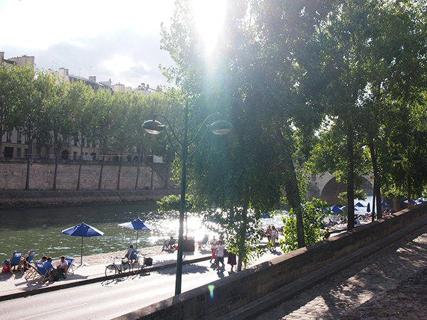 Les vacances Posted on 2013年8月9日 by emzapp15 返信 パリは8月に入って、本格的なバカンス。観光客はいるけど、何だかヒーッソリしています。学校が休みだから子どもたちは歩いてないし、路面店はクローズが多いし、マルシェも店数が2/3か半分くらい。スーパーの魚コーナーまでも閉まってるし、積上っている野菜も少なく寂しい感じです。フランス人はきっかり休みますね〜。この習慣、羨ましい。 パリのセーヌ川沿いは期間限定ヤシの木とビーチで盛り上がっています。