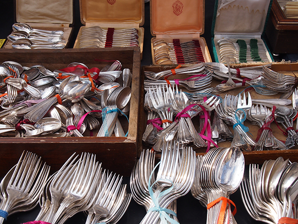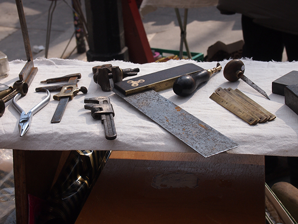 大好きだったヴァンブ蚤の市。ここの蚤の市は並木道沿い何百メートルにも渡って、小さいお店が所狭しとずらーっと並んでいます。器、レース、工具、アフリカのオブジェ、アクセサリー、本。可愛いものからへんてこなものまでたくさんの品が置いてあります。雑多なガラクタの中から、いかに安くステキなものを探し出せるかが蚤の市の楽しいところ。毎回目を凝らして自分だけの宝物をワクワクしながら探します。そして、お店の人とのやり取りもまた面白いところ。回を重ねるうちに私は、「この値段がいいのだけれど。。。」 という値段交渉が少しばかり上手くなりました。何回も商品を手に取った末、欲しそうに、少し遠慮がちに、自分の希望の値段を「シルブプレ」を付けてそっと言うと、だいたいのおじさんパリジャンは値段を下げてくれます。3回に2回ほどの割合で。